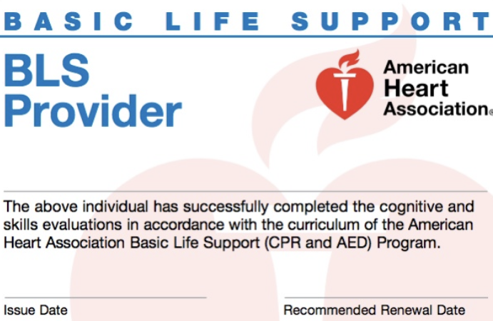 Participants in the AHA's BLS course learn how to quickly identify a number of life-threatening situations, perform effective chest compressions, provide the proper ventilations, and use an AED as soon as possible.